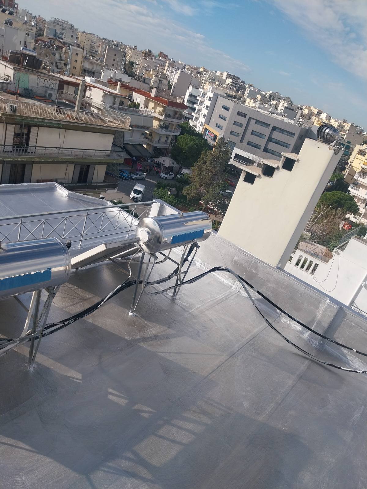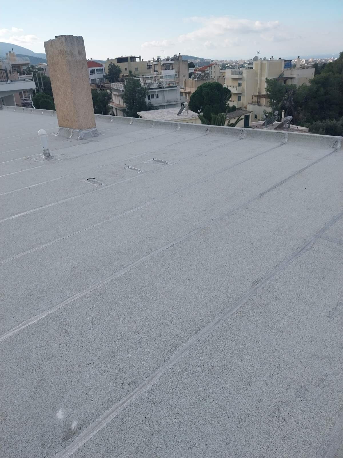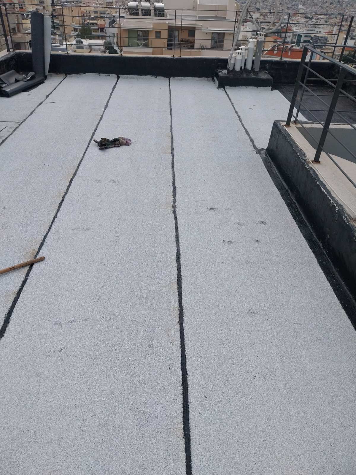 Η εργασία με τα τρία στρώματα αναφέρεται σε στεγάνωση ταράτσας με ανακλαστικές ιδιότητες και μεγάλο προσδοκώμενο χρόνο ζωής. Τα στρώματα που την αποτελούν είναι ασφαλτόπανο ελαστομερές -20C, διπλή στρώση υαλοπάνων με συγκόλληση εν ψυχρό και εμποτισμό από ασφαλτικό γαλάκτωμά + ανακλαστικό υδρόφοβο ρευστό αλουμίνιο.
