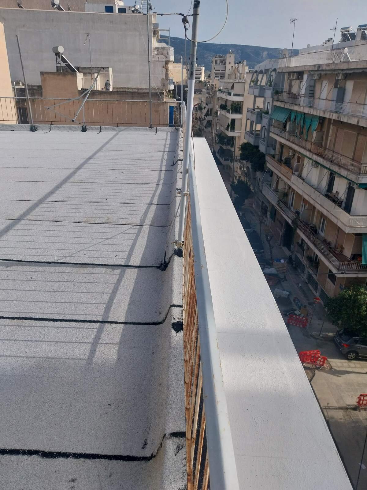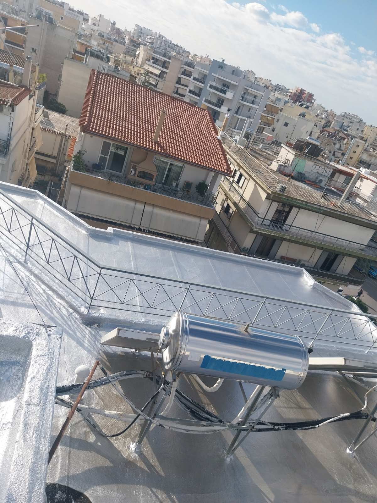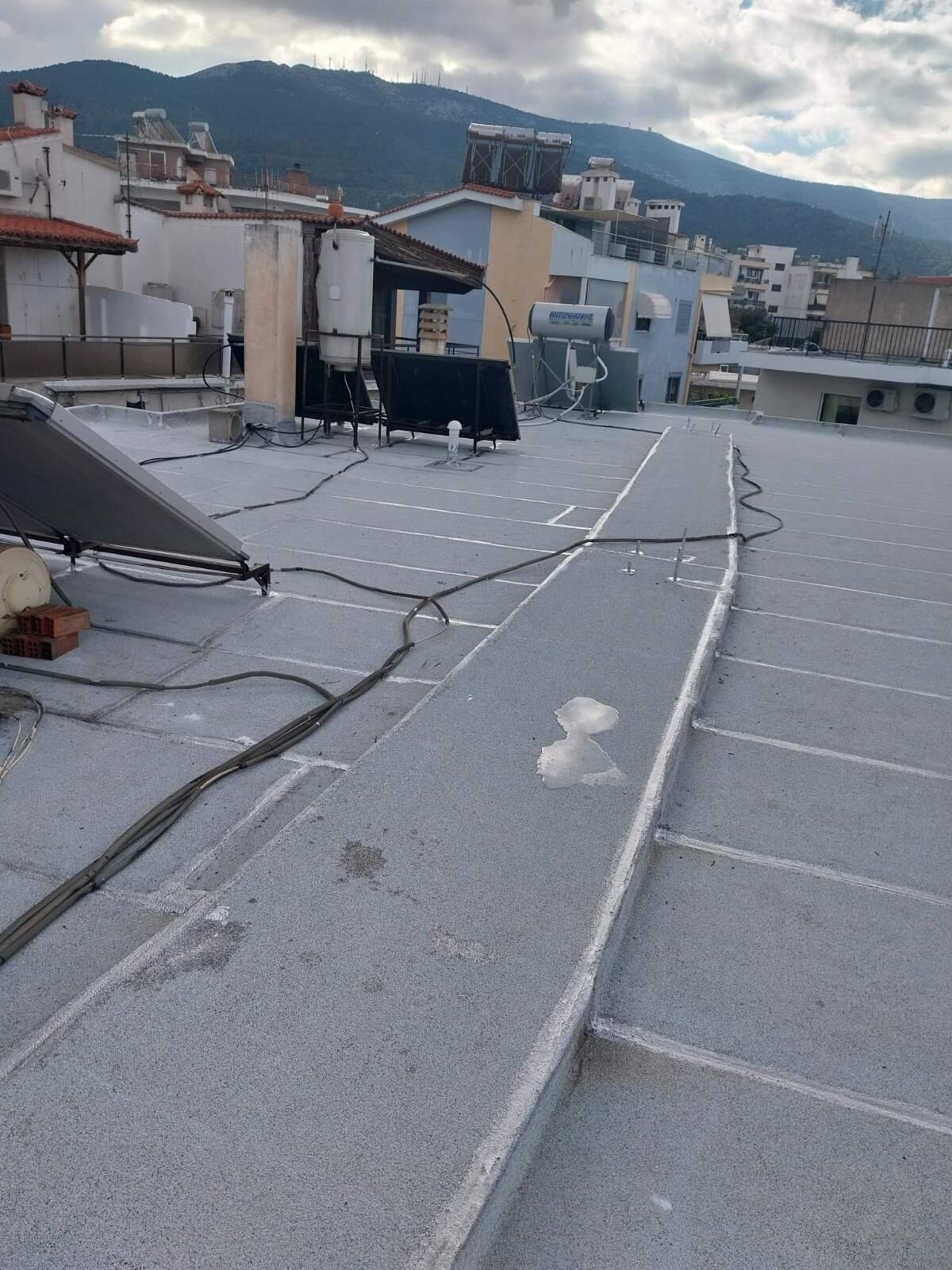 Η εργασία με τα τρία στρώματα αναφέρεται σε στεγάνωση ταράτσας με ανακλαστικές ιδιότητες και μεγάλο προσδοκώμενο χρόνο ζωής. Τα στρώματα που την αποτελούν είναι ασφαλτόπανο ελαστομερές -20C, διπλή στρώση υαλοπάνων με συγκόλληση εν ψυχρό και εμποτισμό από ασφαλτικό γαλάκτωμά + ανακλαστικό υδρόφοβο ρευστό αλουμίνιο.