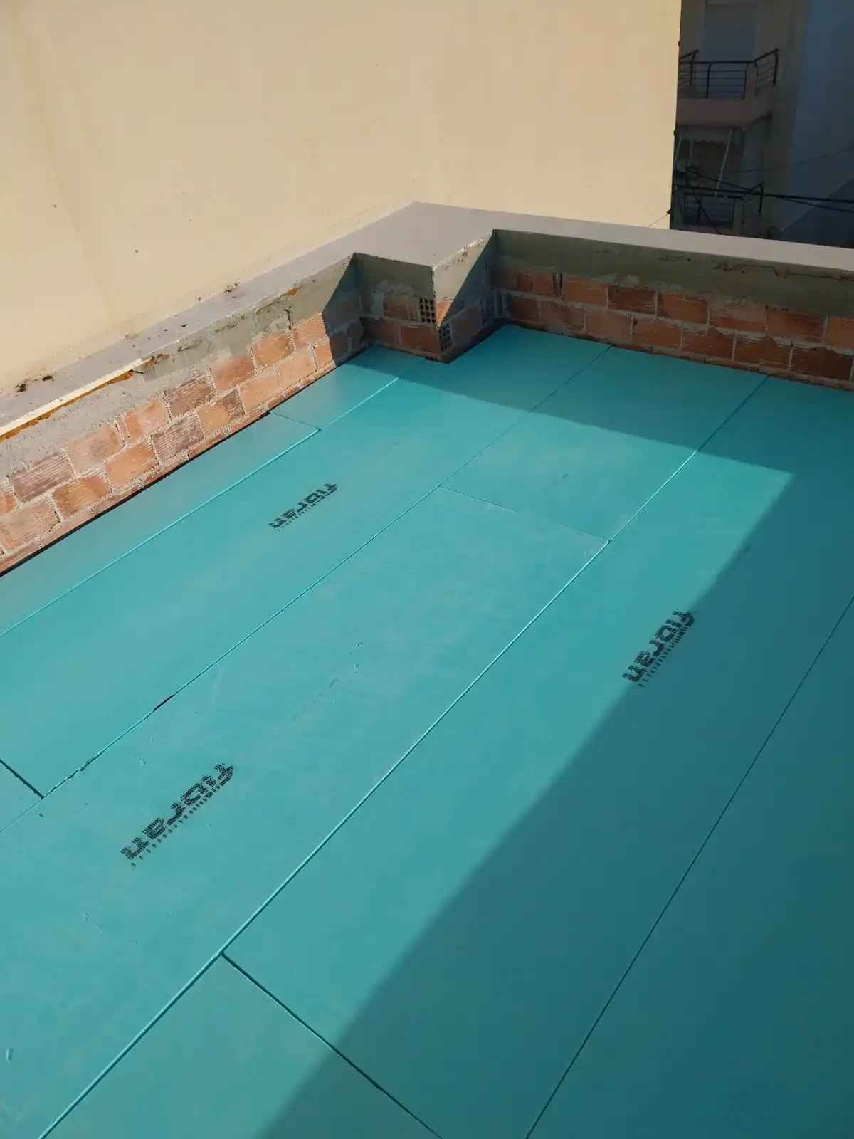 Γεια σας! Συμβατική μόνωση με κονίαμα, στεγανοποίηση και πλάκες τσιμέντου για βαριά και συχνή χρήση