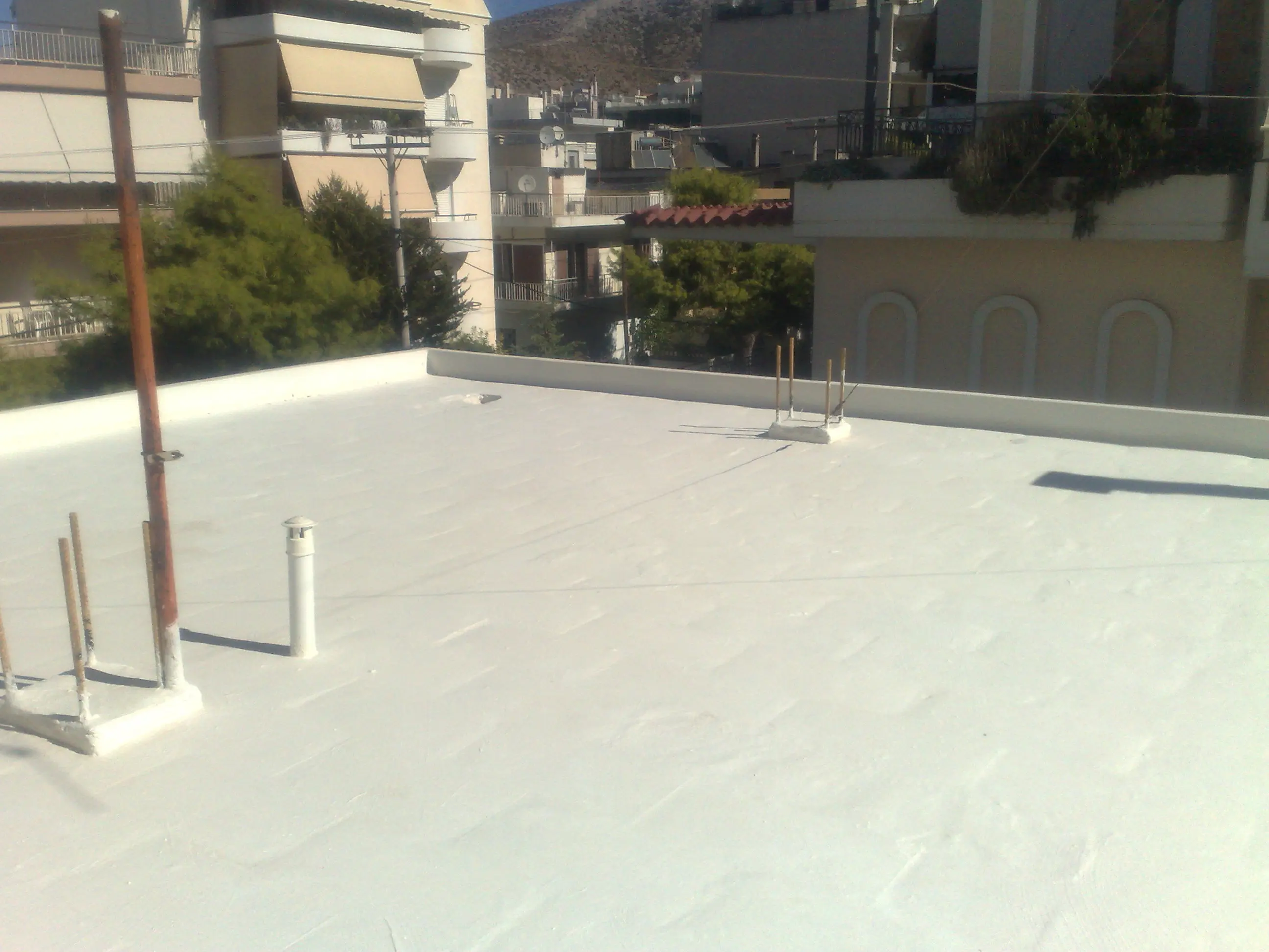 - Σφράγιση με ελαστομερές λευκού χρωματισμού ενισχυμένου με latex και καουτσούκ smaltil – Σε 3 Στρώσεις.