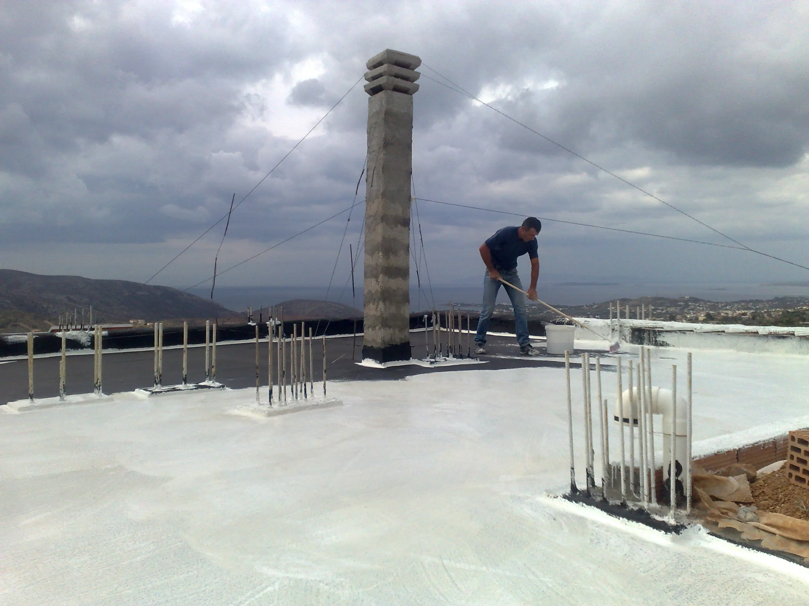 Μόνωση συμβατική με eps διογκωμένη πολυστερίνη λευκη και τσιμεντοκονία κλισεων. Ακολουθησε επιστρωση φυλλου στεγανωσης – εμποτισμου και σφραγιση με τελ. μορφη απο isoflex. Γραπτη εγγυηση 15 ετων. Η εφαρμογη θερμομονωσης πραγματοποιηθηκε στο Λαύριο Αττικής.