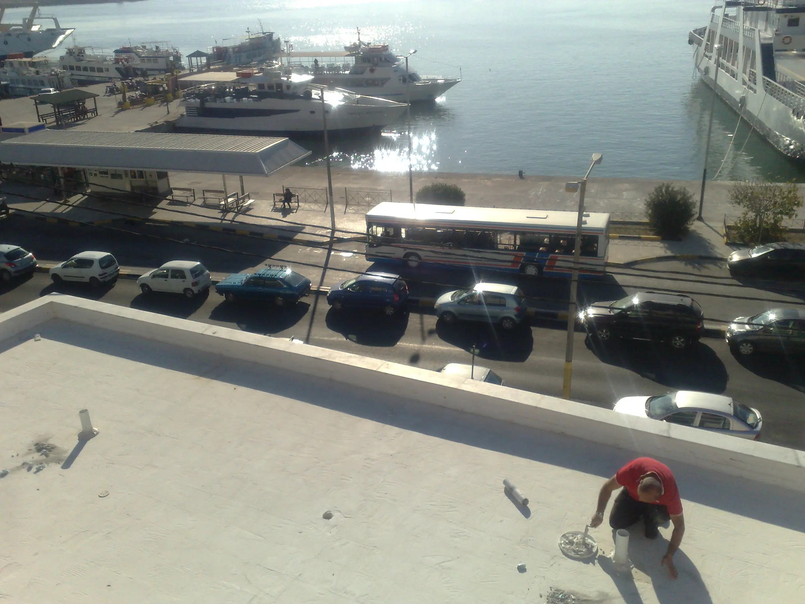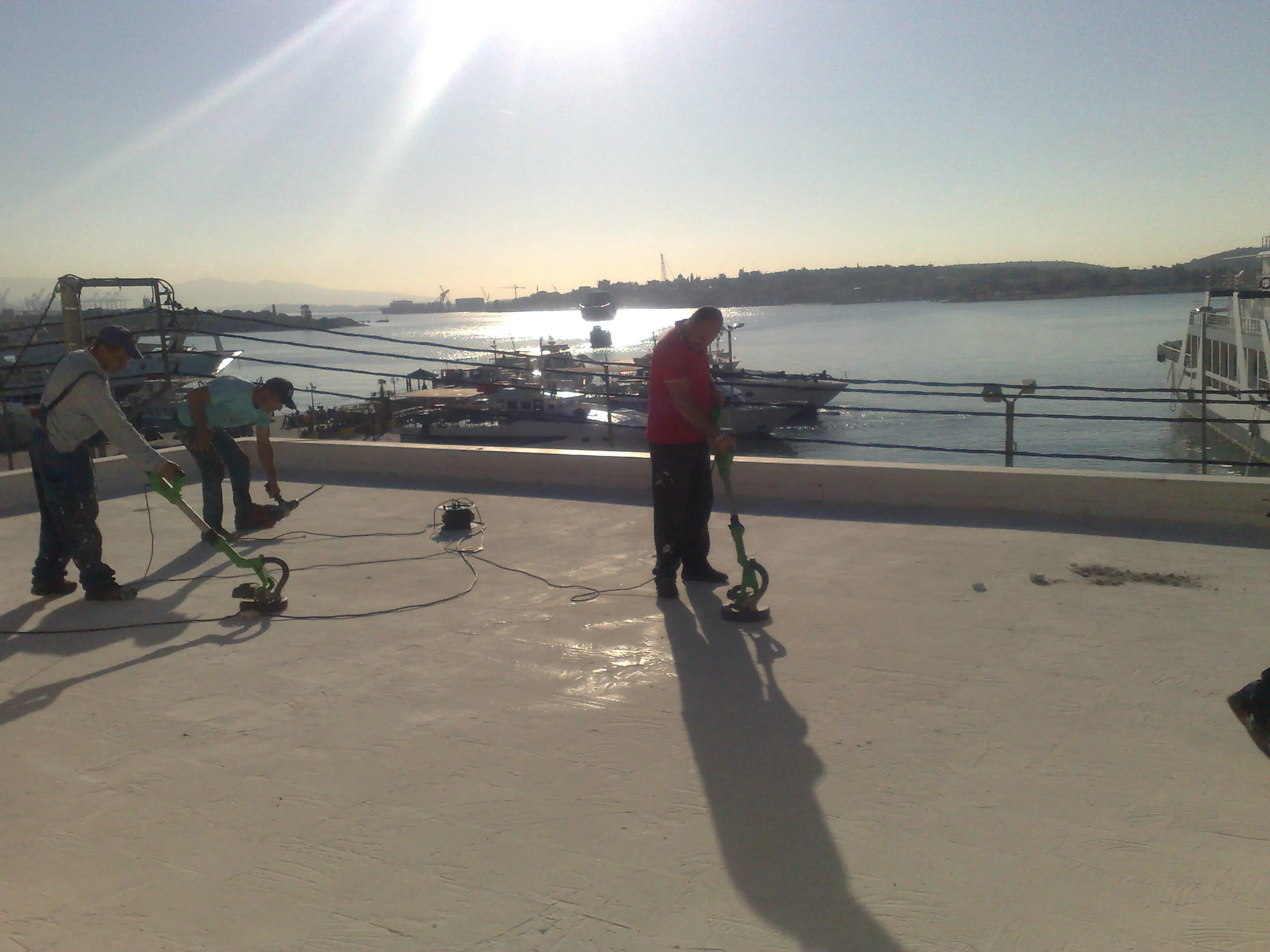 Στεγανοποίση βεραντών στην Σαλαμίνα Αττικής για απευθειας επικόλληση κεραμεικων πλακιδιων. Τρεις στρωσεις izover plus με πολτο σφραγισης και λευκο σμαλτο ακρυλικης βασης για καλυτερη προσφυση με την ακρυλικη κολλα πλακιδιων. Πριν την επικολληση των πλακιδιων πρεπει να προηγηθει ελαφρο ασταρωμα της επιφανειας με αραιωμενη κολλα για πλακακια.