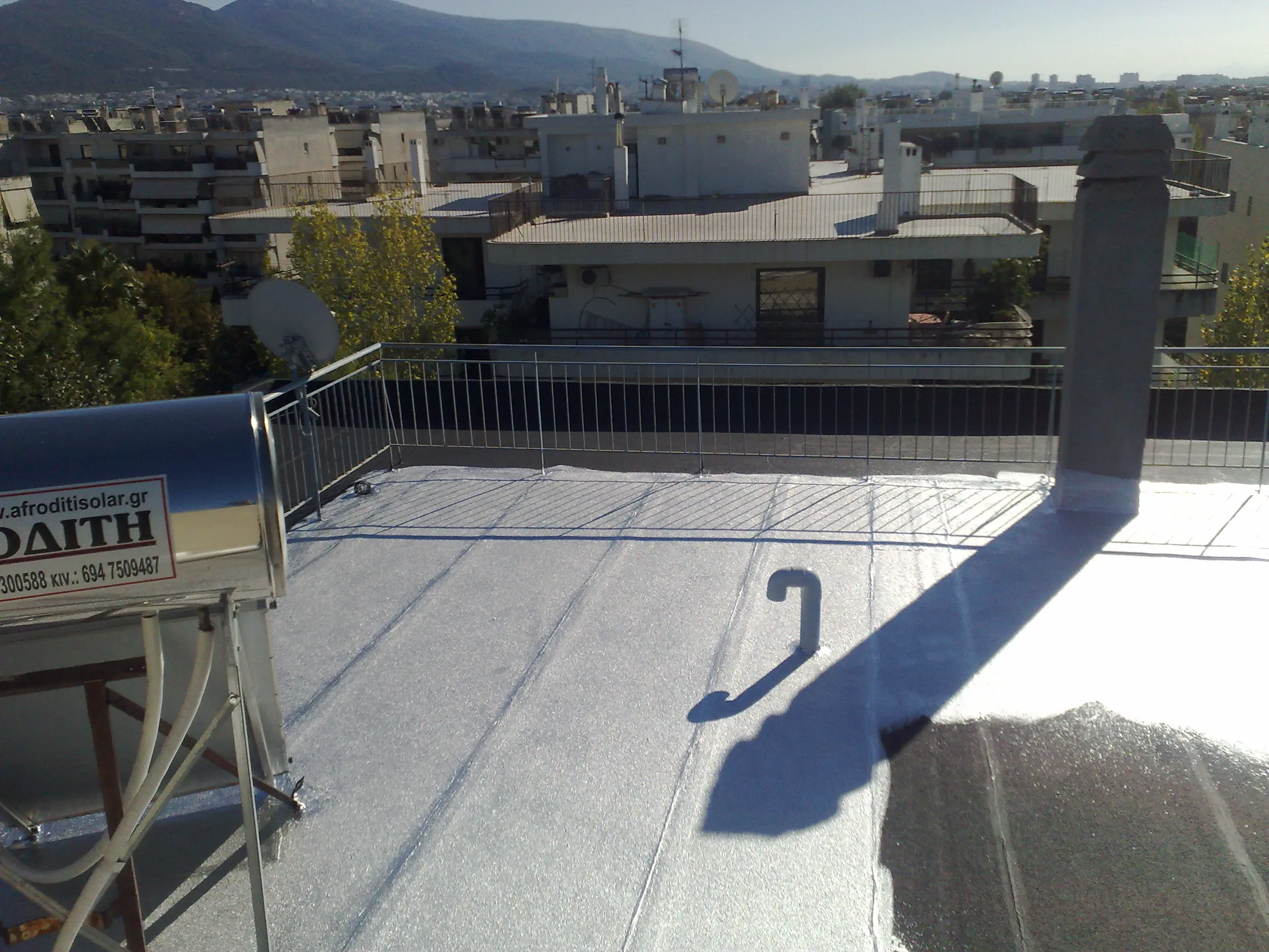 Η συντηρηση των ασφαλτοπάνων έλαβε χώρα στο Περιστέρι Αττικής. Με κόστος 4€ / 1 τ.μ. συμπεριλαμβανονται 10 ετη γραπτη εγγυηση, οι εργασιες αφορουσαν φρεσκαρισμα μεμβρανών με φλογιστρα, αεραγωγους εδαφους φ100, μαστιχα σε αρμους και αποληξεις, ασφαλτικο πολτο σε 2 στρωσεις και ρευστη τελικη μορφη αλουμινιου ravaproof.