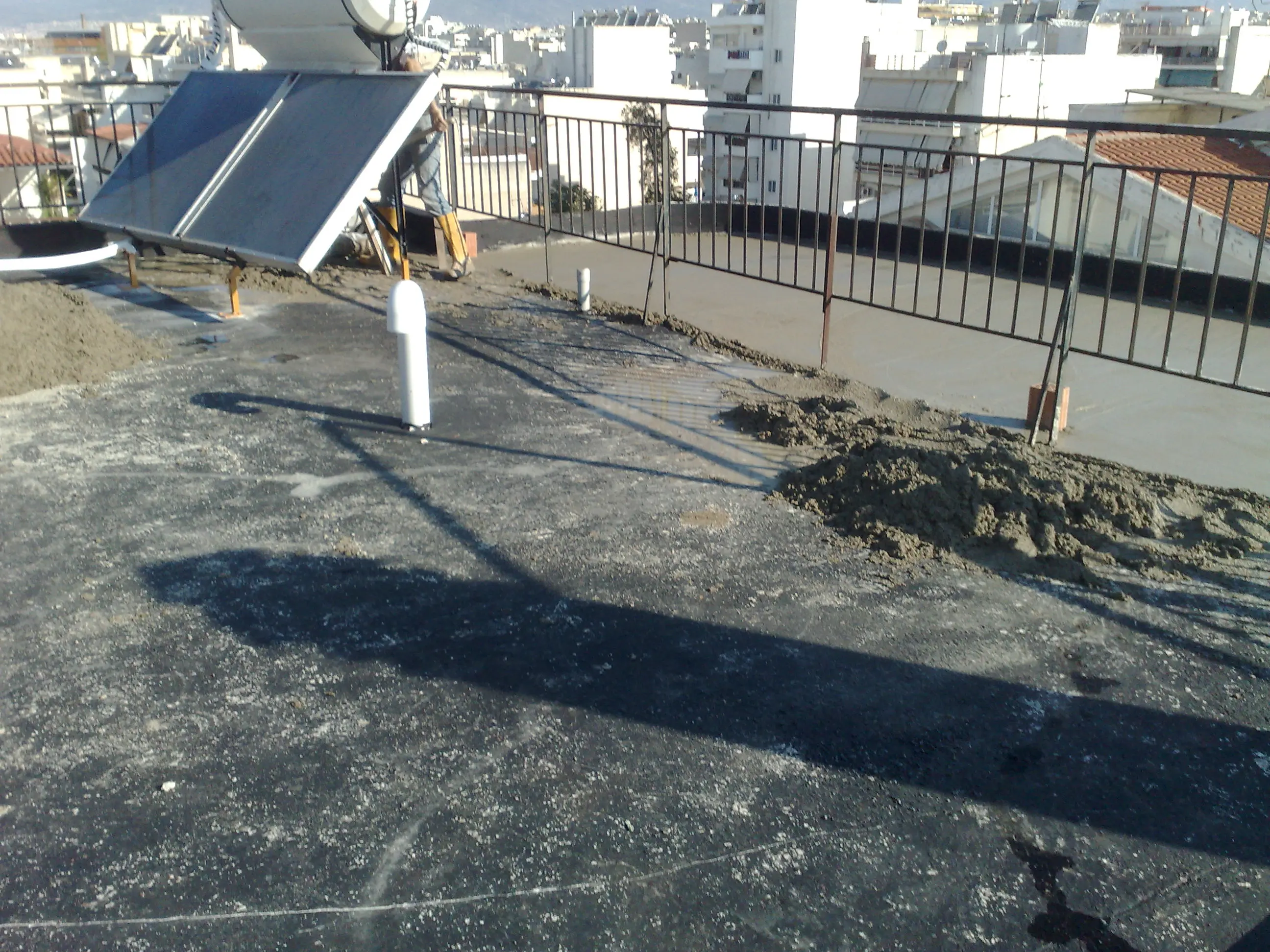 Ολα τα τσιμεντοκονιαματα πρεπει να περιεχουν προσθετο revinex και στεγανωτικα κονιών. Μετα την κονια ερχεται η δευτερη στεγανωση με ακρυλλικα υλικα, πολυουρεθανικα (hyperdesmo, isomat pu 500) η ακομα καλυτερα με φυλλα εμποτισμου ή υαλουφασματα και ασφαλτικα γαλακτωματα.